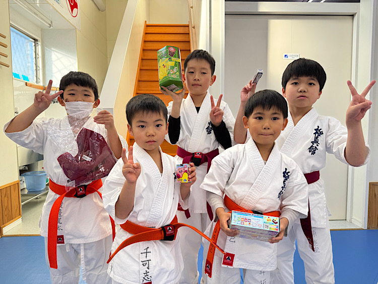 また、21日(土)は稽古納めの千本突きの後に、毎年恒例の年末お楽しみジャンケン大会が開催されました!