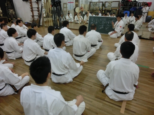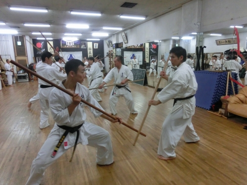 まず始めに、武器を稽古することの意義やとらえ方の講義があり、その後武器の稽古となりました。サイ、トンファー、棒それぞれの武器について、基本的な打ち方から始まり、続いて型、最後に分解稽古と進められました。型だけでは分かりづらい動作が分解で稽古でき、とても勉強になりました。道場でも稽古を続けていこうと思います。