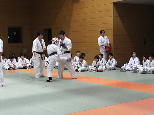 少年部からは中村彩乃1級、一般部からは高橋俊介初段、蓮見智子初段が昇段に挑戦しました。この3名はいずれも年間出席日数ベスト5を数年間キープしてきました。その成果をついに試される日が来たのです。