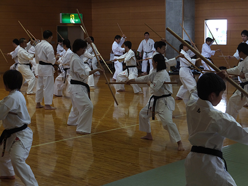 棒術の基本練習をしっかりと行ってから型「大城の棍」に入りました。