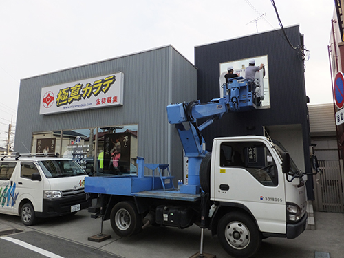 栄誉を称え、道場入口の2階窓ガラスに入賞者が掲示されました。(1.8m×1.2m)