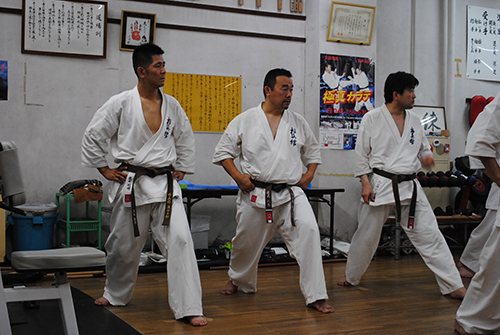 ・三戦立ち:立ち方を正確に50本 膝と腰の連動、運動線について