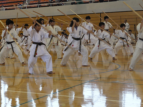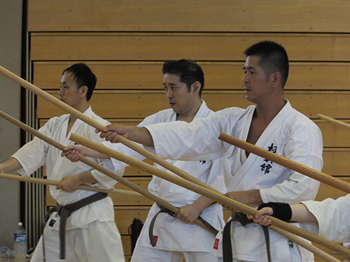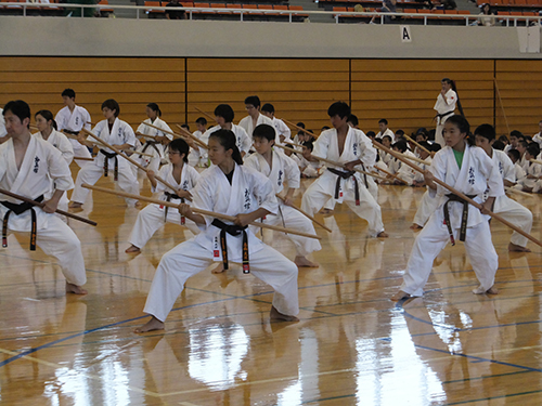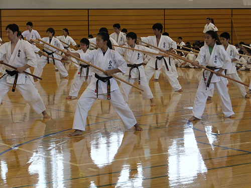 午後は、型や武器術を帯別に分かれて稽古を行ない、