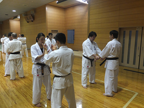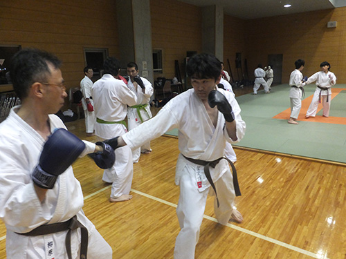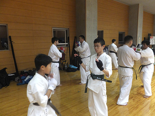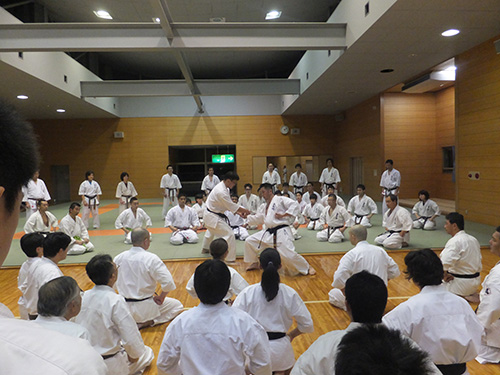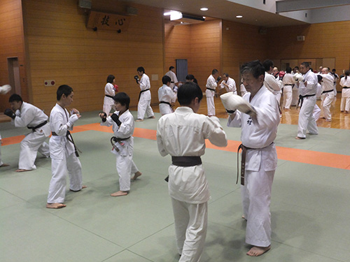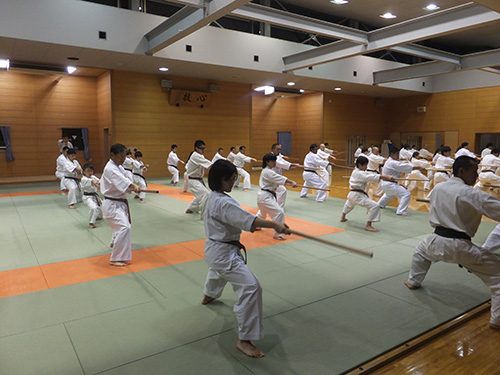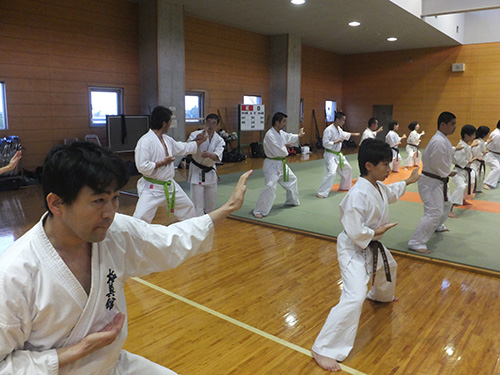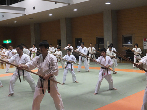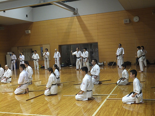特に足幅の無い一直線で行う前屈立ちの移動稽古は体の軸を確認するのは最適の稽古方法でした。しかし自分としては不出来な面ばかりで今後の課題も見え、日常の稽古に新たなテーマをもって望む決意にもなりました。今回の技術講習会で感じた事は、参加しない限りは得ることが出来ない貴重な時間だったと思います。