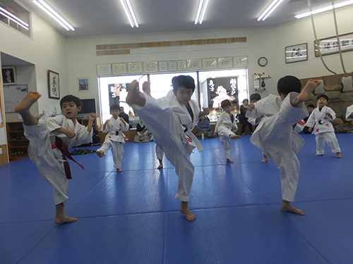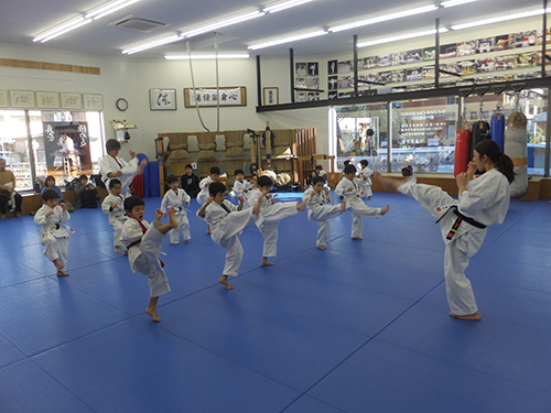 始めにスクワット100回から始まり正拳突き300回、上段蹴り200回全員が元気よく完遂しました。