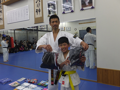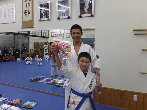 最後はお楽しみジャンケン大会です。道場オリジナルジャージの上下セットをコウキ君がゲットしました。