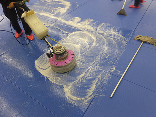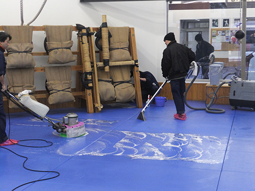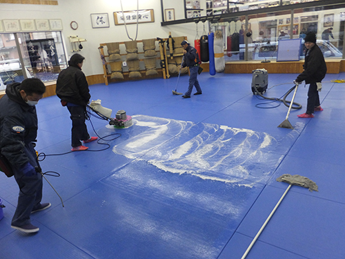 極真館足立支部の浅香先生が代表を務めるジャパンビルケアー様の協力で道場の隅々まで徹底的に清掃します。